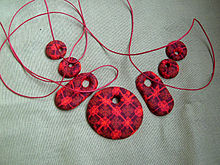 Украшение из пластики Sculpey III Под этим общим названием фирмой «Polyform Products Co» (США) производятся несколько видов пластики: · Super Sculpey (позиционируется как глина профессионального качества для скульпторов и художников по куклам; выпускается только в телесном цвете); · Sculpey III (выпускается в 44 цветах); · Premo Sculpey (выпускается в 32 цветах); · Sculpey Eraser Clay (пластик для моделирования, который после обжига имеет свойства стирательной резинки) · Sculpey Granitex (пластик с эффектом камня; выпускается набором по 8 брусков); · Sculpey Mold Maker (очень мягкий пластик, предназначенный для изготовления форм и отпечатков; после запекания остаётся гибким). [править]Применение Полимерная глина широко используется в декоративно-прикладном искусстве. Применяется для изготовления: · сувениров, украшений, бижутерии; · предметов интерьера; · букетов и цветочных композиций; · ёлочных игрушек; · авторских кукол. Полимерная глина позволяет передать тонкие скульптурные детали, эффективно имитировать различные материалы и текстуры. Характерным отличием от пластилина является возможность длительного хранения изделий. Благодаря простоте работы и доступности технологий изготовление изделий ручной работы из полимерной глины стало источником дополнительного и основного дохода для многих людей. [править]Безопасность Самоотвердевающие легкие полимерные глины — детские массы для лепки, проходят тщательную экспертизу и разрешены с 3-х лет (I-Clay, A-Clay и т. п.) Бостонский институт материалов для искусства и ремёсел проводил исследование продукции основных производителей полимерной глины и заключил, что материалы соответствуют стандарту ASTM D-4236 для материалов для искусства и ремёсел, установленного Комитетом по безопасности продуктов потребления (Consumer Product Safety Commission)[3]. Исследования [4] суммировали метаболизм и фармакокинетику фталатов, использовавшихся в полимерных глинах и оценочное поступление фталатов в организм профессиональных художников. Результаты показали, что количество полученных организмом фталатов через кожу меньше предполагавшегося, а количество попавших оральным путём — значительно ниже установленного Допустимого Суточного Приёма (ADI) для всех тестированных фталатов. Вместе с тем, корпорация «Vermont Public Interest Research Group» заключила, что использование полимерной глины может привести к небезопасным уровням получения организмом фталатных пластификаторов, особенно среди детей, через случайное проглатывание следов, остающихся на руках после работы[5]. К 2009 году Евросоюз и штат Калифорния приняли запрет на использование фталатов. Производители полимерных глин изменили состав и привели его в соответствие новым стандартам. Превышение температуры запекания полимерной глины приводит к разложению ПВХ с выделением токсичного газа — хлористого водорода (газообразная соляная кислота). Все производители сопровождают свой продукт предупреждениями о недопустимости превышения температуры запекания. Также следует убирать все продукты и животных из помещения, в котором проходит запекание, и проветривать его после работ. Ёмкости и приспособления, которые контактировали с незапечённой полимерной глиной, крайне не рекомендуется впоследствии применять при приготовлении пищи. О полимерной глине (термопластика, фимо, polymer clay).