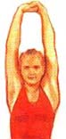 Вертикальное растяжение мышц III (1) Поднимите руки и крепко сцепите пальцы обеих рук. На вдохе потянитесь вверх и задержите дыхание на 5 секунд.