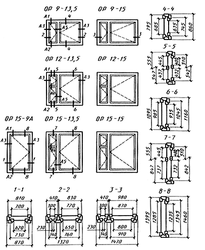Сечения по притворам окон и балконных дверей жилых и общественных зданий