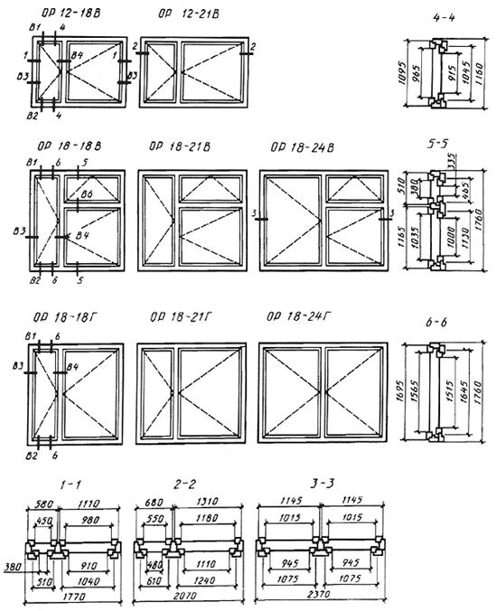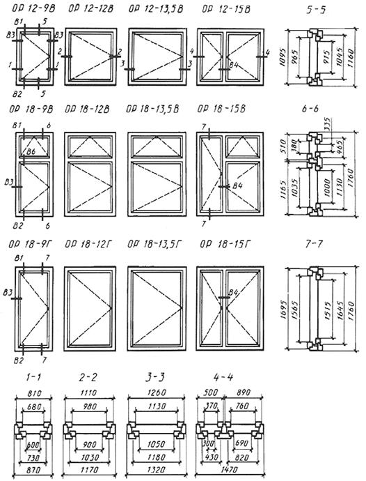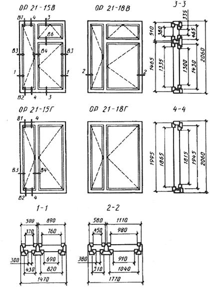 Конструкция, форма, основные размеры и марки окон и балконных дверей общественных зданий