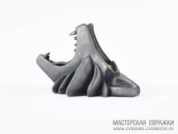 17. Не забываем про глаза. Из маленьких шариков делаем овалы, сажаем их в углубления на гель и немного придавливаем, чтобы у нас получилось хищное выражение. Финальный обжиг 20 - 30 минут.