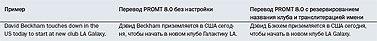 Мы также предложили сервису Google перевести фрагмент новости о футболисте Дэвиде Бекхэме, однако результат перевода предложения «Beckham may find LA a refreshing change once the hype and novelty wears off» также оказался неудачным: «Бэкхем может найти LA освежающий измениться после того, ажиотаж и новизна носит удалиться». К сожалению, иначе как бессмысленным набором слов такой перевод назвать нельзя. Напрашивается вывод, что мы имеем дело с примитивным подстрочником, и система, не найдя связного перевода предложения в базе, тупо подставила перевод каждого слова по отдельности.