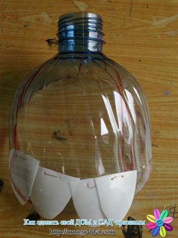 Ну начнем, конечно же с основы. Для этого отрежем верх у пластиковой бутылки, это будет передняя часть шеи.