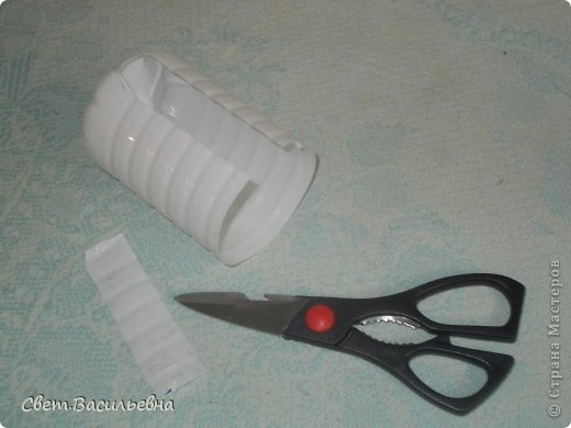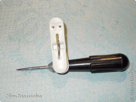 3. Здесь, наверное, всё понятно. Уточню только, что нож - с волнистым лезвием (вместо него лучше бы ножовочку по металлу, но не подвернулась), игла - с загнутым кончиком (если у вас есть, а вообще пойдёт любая большая). Ножницы - вот это очень важно, так как резать пластмассу легко можно не всякими ножницами. У меня для этих целей давно служат кухонные с лезвиями короткими и НЕ залитыми пластмассой. Впрочем, могут подойти и другие, главное, чтобы было удобно и безопасно.