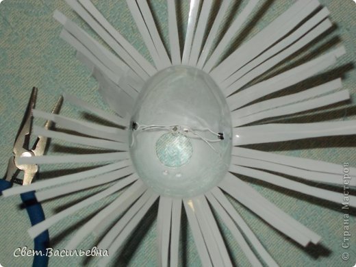 71. Сразу прикрываем переход от цилиндрической части к донышку бутылки. Конечно, пришив такое количество перьев, разрезав кучу бутылок, вы сможете сами решить, как лучше делать такие переходы. Но принцип один: чем круче " рельеф", тем больше одиночных перьев.