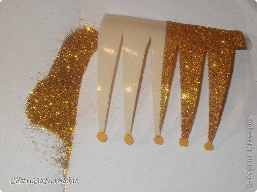89. Вырезаем корону, готовим блёстки. Начинаем снизу отклеивать скотч...