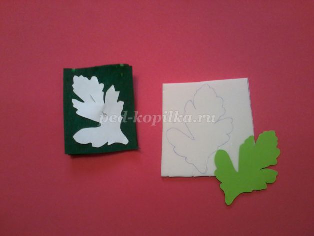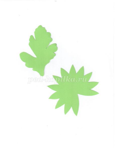 11. По шаблону вырезаем листья из изолона или гофрированной зелёной бумаги.