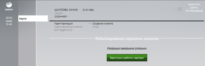 Рис. 9. Сохранение данных Клиента При обнаружении ошибок в клиентских данных можно перейти к любой из представленных на экране вкладок (см. Рис. 8) и внести исправления.