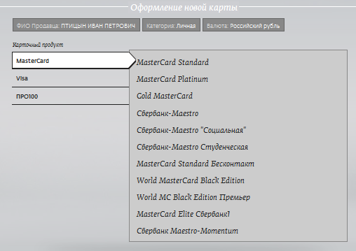 Рис. 18. Выбор категории карты 5. Выбрать валюту, в которой будет открыта карта.