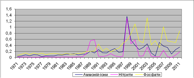 | Вміст забруднюючих речовин у Кременчуцькому водосховищі за весь період спостереження