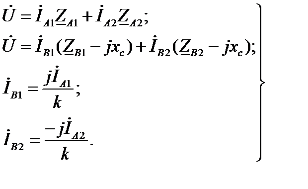 5. Расчет симметричных составляющих токов электродвигателя выполняется путем решения следующей системы уравнений.