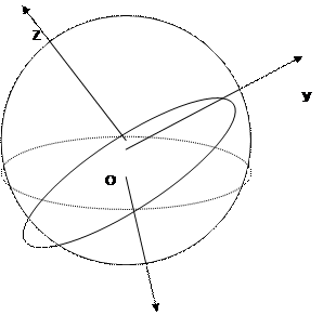 Принцип функционирования ВД КИМС. Воздушно-доплеровские КИМС более просты в реализации, чем рассмотренный ранее РИД, поэтому они довольно широко используются в ПНК ЛА. Определение местоположения ЛА в системах такого типа осуществляется в ортодромической СК ОХУZ путем интегрирования составляющих путевой скорости по осям ОХ и ОУ. Ортодромическая СК. В ортодромической СК за основную плоскость отсчета принимается плоскость большого круга (ортодромия), проходящая через начальную и конечную точки маршрута. Форма Земли считается сферической, а начало координат совмещают с её центром. Точку А пересечения ортодромии с плоскостью экватора называют узлом ортодромии и через неё проводится ось ОХ, а остальные координатные оси образуют правую тройку.