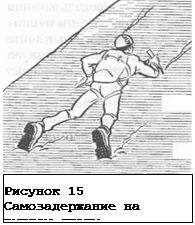 Прием самозадержания следует тренировать так, чтобы в случае необходимости он был выполнен, как стереотип движения и не нужно было размышлять — «А что мне сейчас делать?!». Отрабатывать приемы следует на безопасных, имеющих пологий выкат склонах. Однако снег должен быть достаточно плотным, а склон — крутым. Отработку самозадержания рекомендуется проводить в последовательности движений: — спуск и проскальзывание ног; — падение на спину и на бок; — переворачивание на грудь и одновременная работа рук с ледорубом — активное торможение; — после остановки выбивание носками ботинок ступеней и подъем с опорой на ледоруб в полный рост; опереться ледорубом о склон (забить его и накинуть петлю самостраховки), привести себя в порядок; — после этого можно продолжать движение (рис. 17).