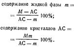 При наличии жидкой и двух твердых фаз: соединяем прямой точку состава жидкой фазы п с точкой исходного расплава М и продолжаем эту прямую до пересечения с соединительной линией АС—В, соответствующей пограничной кривой E1E2, на которой в равновесии с жидкой фазой находятся кристаллы В и АС. Точка пересечения k, лежащая на соединительной прямой АС—В, будет характеризовать суммарный состав твердой фазы (В + АС) и разделит эту соединительную прямую на два отрезка (АС— k и k —В), длины которых будут определять содержание в твердой фазе соответственно кристаллов В и АС (пропорциональность обратная). Таким образом, содержание определяемых фаз находится из следующих выражений: