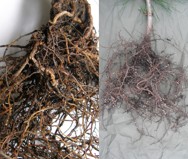 Рис. 4. Микориза на корнях саженцев кедра сибирского.