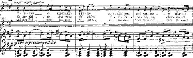 Основная задача дирижера и хористов – это передача контрастных образов и характерных черт половцев в сцене. Каждый раздел помимо описанных выше средств музыкальной выразительности контрастен и по темпу. Открывается произведение очень томной, нежной и лирической песней чаг – невольниц хана, звучащей в темпе Andantino - скорее, чем Andante, но сдержаннее Allerretto. Качество звука должно быть адекватным образу – светлый, полетный, не глубокий тембр – sempre legato e dolce – связно, протяжно и нежно, сладко:
