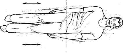 Рис.3 4. Лежа на спине, плечи прижать к полу. За счет движения тазом ноги «ходят» по горизонтали от себя, к себе при неподвижной верхней части тела (рис. 4).