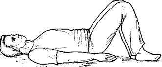 Рис. 12 13. Колени согнуты под углом 45°, плечи прижаты к полу. Сомкнутые ноги положить вправо-влево (рис. 13), голову в другую сторону. Затем расставить ноги шире плеч, левое колено положить на пол влево, одновременно голову повернуть влево.