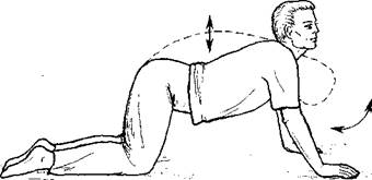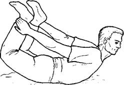 Рис.7 8. Согнуть колени, обхватить их руками и переваливаться слева направо и наоборот, вперед-назад. Немного согнуть колени, поднимать, опускать таз (рис. 8).