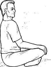 Рис. 32 Рис. 33 35. Сидя на полу, скрестить ноги по-турецки, затылок, лопатки, таз на одной прямой, руки на коленях. На вдохе втянуть прямую кишку