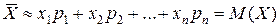 Закон распределения полностью характеризует случайную величину. Однако часто закон распределения неизвестен и приходится ограничиваться меньшими сведениями. I. Математическое ожидание M(X). Математическим ожиданием M(X) случайной величины X называется сумма произведений всех ее возможных значений на соответствующие вероятности, т.е. Смысл математического ожидания. Пусть произведено N независимых опытов, в каждом из которых X принимает определенное значение. Например, x1 появилось m1 раз, x2 появилось m2 раз, ... xn появилось mn раз. Ясно, что m1+ m2+…+ mn=N. Вычислим среднее арифметическое найденных случайных величин: