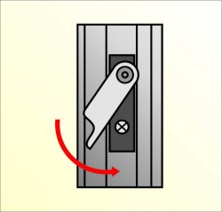 - Удерживая блокиратор, перевести оконную ручку в положение «створка наклонена» (см. рисунок №2). - Прижать верхний петлевой угол створки к раме. - Удерживая блокиратор ручки в прижатом состоянии, перевести ручку в положение «створка открыта» (см. рисунок №2). - Отпустить блокиратор. При ветре и сквозняке окна и двери должны быть закрыты. Ветер и сквозняк по определению имеют место в том случае, если окно в откидном положении открывается или закрывается из-за возникшего давления или разряжения воздуха. Фиксация открытого положения створок окон и дверей возможна только при установке дополнительных деталей фурнитуры, например при установке «гребенки» - ограничителя наклона и поворота створки.