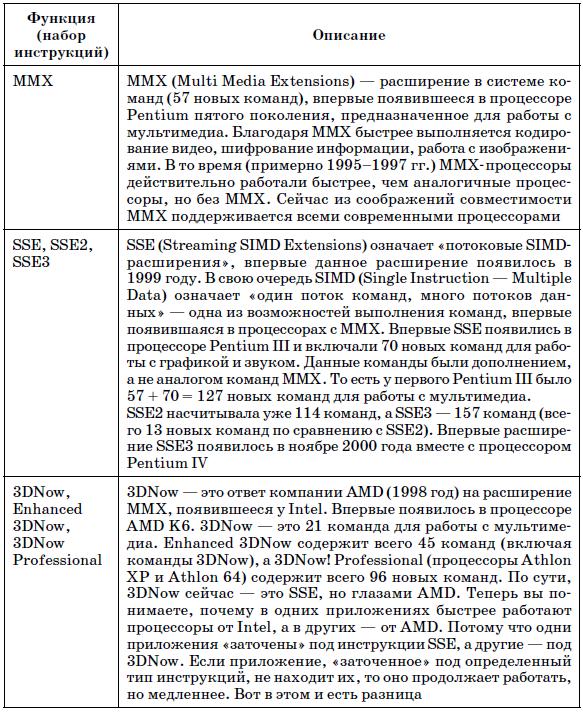 Разрядность процессора Первый процессор от Intel (4004) был четырехразрядным, или 4-битным. Это означает, что за один такт процессор мог обработать 4 бита информации. Все современные процессоры являются 64-битными, хотя до сих пор много систем построено на 32-битных процессорах. Как правило, такие системы были куплены пару лет назад, когда 64-битные процессоры стоили неприлично дорого. Да и, честно говоря, не было смысла покупать 64-битный процессор, если практически все программное обеспечение было 32-битным. То есть деньги тратились на то, что нельзя полностью использовать. Это все равно что купить маршрутку и ездить в ней одному.