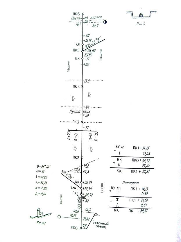 Рис. 1 Пикетажный журнал Таблица 1 Отметки реперов, точек трассы и поперечного профиля