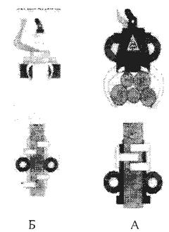 Рисунок 22 А) Головка в режиме погрузчика с ротатором. Б) Головка в режиме валки дерева
