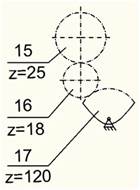 Рисунок 1 – Принципиальная кинематическая схема редуктора Толщина линий, изображающих валы, оси, стержни, шатуны, кривошипы, равна s. Толщина линий, изображающих контуры зубчатых колес, червяков, звездочек, кулачков и других элементов, равна s/2. Допускается вписывать схему-развертку для наглядности в контур изделия, толщина линий которого равна s/3 (рисунок 2).