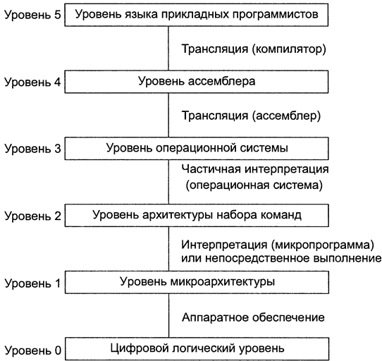 Рис. 1 Многоуровневая организация средств цифровой вычислительной техники