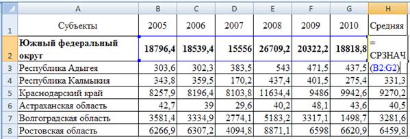 В качестве примера рассмотрим динамику валового сбора зерна (в весе после доработки, в хозяйствах всех категорий; тысяч тонн) по Южному