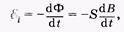 где Ф — магнитный поток, пронизывающий контур, S — площадь площадки, охватываемой контуром, В — магнитная индукция во всех точках этой площадки [см. (13.7); предполагается, что a = 0]. Из последней формулы на основании закона Ома можно записать выражение для силы тока в контуре: