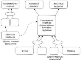 ДРК — это промежуточный этап для перехода от нежелательных явлений из дерева текущей реальности в желаемые результаты в дереве будущей реальности. В ДБР будут отражены действия, которые необходимо предпринять для того, чтобы на месте ключевой проблемы ДТР закрепилось обратное утверждение (эти действия описываются как прорыв в ДРК), и соответствующие желаемые результаты.