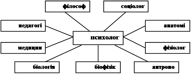 Мал.1. Психологія в системі наук, що вивчають проблеми людини.