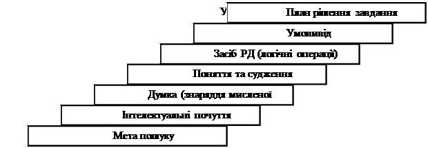 Мислення - це інший вищий психічний пізнавальний процес, який є соціально обумовленим та тісно пов’язаним з мовою. Саме мислення дозволяє моряку шукати та знаходити принципове нову інформацію на підставі особистих розумових дій – порівняння, аналізу, синтезу, індукції, дедукції, моделювання тощо. Мислення тісно пов’язане з почуттєвим пізнанням, воно активно розвивається на основі практичної діяльності людини. За допомогою письменності як спеціальної знакової системи зміст конкретної та узагальненої інформації фіксується та розповсюджується у формі запису в межах книг, журналів та статей. Мисленню як вищому психічному пізнавальному процесу притаманні певні форми. Основні форми абстрактного мислення: поняття, судження та умовиводи. Мислення має достатньо складну структуру, воно пов’язано зі свідомим рівнем психіки, мовою, а також з інтересами та потребами особистості, тобто з другої сигнальною системою (Мал.10).