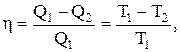 где Изменение энтропии в обратимом процессе где 1 и 2 – начальное и конечное состояние системы. КПД тепловой машины где Q1 количество теплоты, полученное рабочим телом (газом) от нагревателя; Q2 количество теплоты, полученное рабочим телом охладителю. КПД идеальной машины где Т1-температура нагревателя; Т2-температура охладителя.