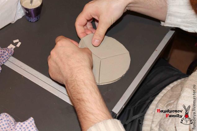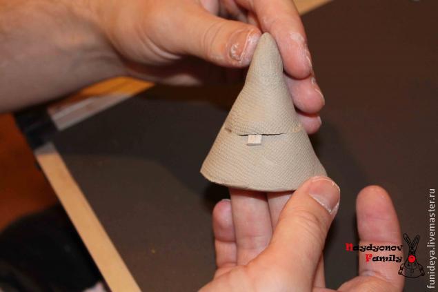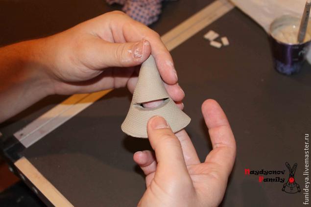 8. Края треугольника смазываем шликером и соединяем между собой.