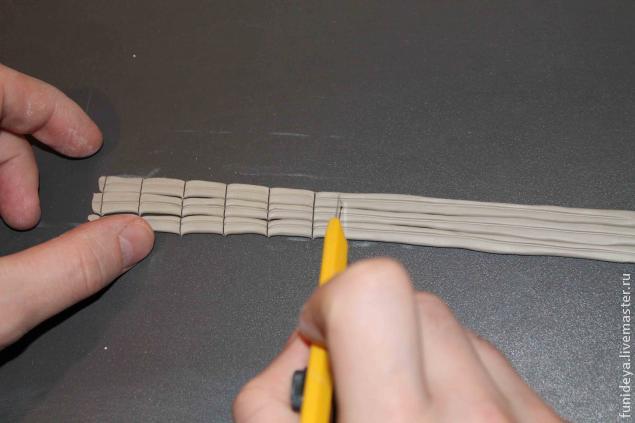 Далее, при помощи лезвия, режем жгутики на небольшие кусочки