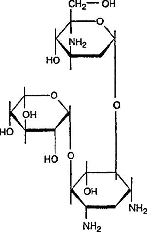 О-З-Амино-З-дезокси-а-Э-глюкозопиранозил-(1-»6)-0-[2, 6-диамино-2, 3, 6-тридезокси-а-0-рибо-гек-сопиранозил-(1-»4)]-2-дезокси-0-стрептамин: СИНОНИМЫ: Бруламицин, Небцин, Обрацин, Тобра-иин, Тобрекс, Brulamycin, Distobram, Gernebcin, Nebcin, Obracin, Tobracin, Tobradistin, Tobramycin, Tobrasix, Tobrex и др. Антибиотик, продуцируемый Str. tenebrarius. Выпускается в виде сульфата. Подобно другим антибиотикам-аминогликозидам, обладает широким спектром антибактериального действия: эффективен в отношении грамположительных и грамотрицательных микроорганизмов. По степени антибактериального действия в отношении штаммов Ps. aeruginosa является одним из наиболее активных в ряду аминогликозидов. При внутримышечном введении быстро всасывается; максимальная концентрация в сыворотке крови обнаруживается через 30—40 мин после введения. Однократное внутривенное или внутримышечное введение обеспечивает терапевтическую концентрацию в организме в течение 6—8 ч. Выделяется в основном почками, причем в моче отмечается высокая концентрация препарата. Применяют при сепсисе, пневмонии, гнойном отите, эмпиеме, плеврите, инфекциях мочевых путей, послеоперационных нагноениях и других инфекциях, вызванных чувствительными к этому антибиотику штаммами возбудителей. Вводят обычно по 2—5 мг/кг в 2—3—4 приема внутримышечно или внутривенно (больным с тяжелым течением инфекционного заболевания). Максимальная суточная доза для взрослых 5 мг/кг (в 3—4 приема), для детей 2—5 мг/кг (в 2—4 приема). Курс лечения 7—10 дней. Для внутримышечного введения препарат растворяют в 2—5 мл стерильной воды для инъекций, для внутривенного введения — в 50—100 мл изотонического раствора натрия хлорида или 5 % раствора глюкозы (вводят капельно в течение 20—60 мин). При нарушении выделительной функции почек дозу уменьшают. По экстренным показаниям препарат вводят в обычных дозах, однако при этом тщательно следят за функцией почек и состоянием слуха (учитывая нефро- и ототоксичность препарата). Тобрамицин противопоказан при повышенной чувствительности к антибиотикам-аминогликозидам. Пре-