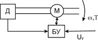 Управляет частотой вращения двигателя блок управления по сигналу от датчика. Синхронный двигатель питается переменным током, а частота вращения или угловая скорость определяются частотой тока в сети. Обмотка статора создает вращающееся магнитное поле и она может быть 2-х или 3-фазной, с однофазной или с пусковой емкостью. Конструкция ротора определяет тип синхронного двигателя: с возбуждением от явнополюсных электромагнитов, от постоянных магнитов, гистерезисный, субсинхронный, реактивный, с катящимся или волновым ротором. Принципиальная схема СД с возбуждением от ПМ. РИСУНОК вращение ротора вызывается взаимодействием поля ротора и вращащегося поля обмотки статора. Если угловые скорости полей и число пар полюсов на роторе и статоре равны, то между разноименными полюсами статора и ротора возникает электромагнитное притяжение, которое вызывает появление электромагнитного момента, называемого синхронным. При запуске угловая скорость ротора не равна синхронной. Синхронный момент близок к нулю. Для увеличения угловой скорости и входа в режим синхронизации при запуске на роботе СД конструируют дополнительную короткозамкнутую обмотку (беличья клетка). Частота вращения двигателя: nдвиг=nполя статора=60f/р, где f-частота тока питания статора, р-число пар полюсов. Частоту вращения двигателя можно изменяя число пар полюсов или частоты вращения поля статора. Обычно используется 2-й способ. Для изменения режима работы и обеспечения реверса в электроприводах с высоким моментом инерции приводного механизма нужно плавно изменять частоту напряжения, питающего СД, чтобы двигатель не выходил из положения синхронизма. Это сложно, особенной когда начальная частота-доли Герц, а затем возрастает до максимального значения. В этом случае используют метод частичного регулирования с самосинхронизацией. Управление преобразователем частоты происходит от системы датчиков положения ротора. Питание вентильных двигателей может быть как от сети постоянного, так и от сети переменного тока. Обычно для питания двигателя от сети постоянного тока используется схема тиристорного преобразователя частоты с инвертором напряжения, если же от сети переменного тока(3-фазного), то применяют схему преобразователя частоты с тиристорным выпрямителем.