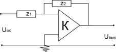 Передаточная функция ОУ вычисляется по формуле: W(S)=Uвых(S)/Uвх(S)= -z2(S)/z1(S), где z1(S) и z2(S)-операторы сопротивлений, знак «-» говорит о том, что выходной сигнал отличается по фазе от входного на 180 град. Приведенная формула справедлива, когда К»1 Схема операционного усилителя с несколькими входами: