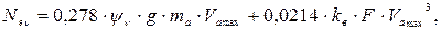 где ψ ν – коэффициент дорожного сопротивления при максимальной скорости. Для дорог равнинной местности с твердым покрытием ψ ν = 0, 015; g – ускорение свободного падения, м/с2, g=9, 81; ma – полная масса автомобиля, 6950 кг; kв – коэффициент обтекаемости, для грузового автомобиля принимаем Vama x – максимальная скорость, 95 км/ч; F – площадь лобового сечения (миделево сечение); для грузового автомобиля: