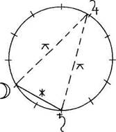 Полусекстиль (30°) действует сильно, если связывает злые планеты, за счет различной природы (несовместимости стихий) рядом стоящих знаков. По орбис не более 2°. Септиль (51°26'). Аспект магической семерки, управляется Белой Луной, он позволяет найти выход из положения. На физическом плане аспект означает психологическую внушаемость, Это дает возможность выбраться из болезни с помощью духовных методов. Большинство западных астрологов учитывают еще один аспект — параллель. Этот аспект образуется, когда две планеты находятся на одинаковом расстоянии от экватора, то есть имеют один угол склонения (определяют по астрологическому календарю). Пo воздействию параллель приравнивается к соединению, (Плутон и Прозерпина в этом аспекте не учитываются.) Традиционно считается, что самое тяжелое течение болезни, катастрофу здоровья дает крестовая ситуация, особенно когда в нее входят злые планеты, или стеллиумы. Л еще хуже, если к планетам, входящим в крест, есть другие неблагоприятные аспекты. Тау-квадрат, как известно, бьет наотмашь и сваливает с ног. Энергия внутри тау-квадрата накапливается долго, несет большое напряжение, а затем выбрасывается в точку компенсации (чаще всего). Значит, если есть тау-квадрат, нужно найти точку, противоположную его вершине. Это и будет «Зоной риска» но знаку, градусу и их управителям. Болезнь может проявиться и по оппозиции, а началом болезни станет крестовая ситуация, которую сформирует планета, транзитом замкнувшая тау-квадрат. Ситуации «Бумеранг» и «Секира» могут дать тяжелые, трудноизлечимые рецидивирующие болезни, если в них входят злые планеты.