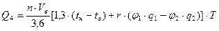 где n - кратность вентилирования, объём /час (n = 3) Vв - объём воздуха, подлежащего замене, Vв = 50 м3 1, 3 - теплоемкость воздуха, кДж/м3 φ 1 φ 2 - относительная влажность воздуха, поступающего в вагон и выходящего из него, доли q1 q2 - абсолютная влажность, поступающего в вагон и выходящего из него воздуха, г/м3 r - теплота конденсации водяного пара из наружного воздуха (при температуре -200С - 2, 89 кДж/г)