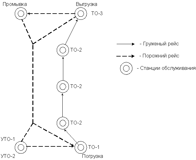 Большая часть парка АРВ не имеет служебного помещения, поэтому обслуживание осуществляется механиками пунктов технического обслуживания. В настоящее время система обслуживания АРВ включает ТО-1, ТО-2, ТО-3, УТО-1, УТО-2, рисунок 4.2.