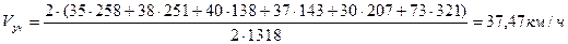 Участковая скорость за полный рейс вагона представляет собой среднюю скорость движения по участкам с учетом времени стоянок на станциях: