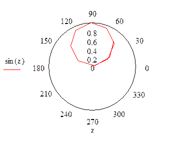 В появившемся поле вставить в местозаполнители имена переменных и функций. Примеры полярных графиков представлены на рис.42. В нижнем местозаполнителе задается полярный угол, в левом местозаполнителе задается полярный радиус. Правый график соответствует быстрому построению графика по заданным точкам. Разбиения левого графика задаются процессором Mathcad автоматически. Форматирование полярных графиков практически идентично форматированию декартовых, поэтому все, сказанное ниже о форматировании декартовых графиков в полной мере относится и к полярным графикам.