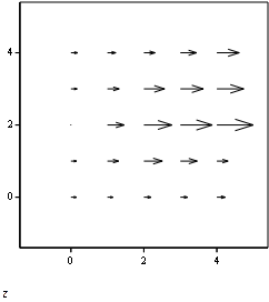 Рис.58 График векторного поля отличается от основных типов двумерных графиков. Его смысл заключается в построении некоторого вектора в каждой точке плоскости. Для задания вектора на плоскости необходимо две координаты этого вектора. В среде Mathcad векторное поле задает комплексная матрица. Действительные части каждого элемента матицы – это проекции вектора на ось ОХ, а мнимые – это проекции вектора на ось ОУ.