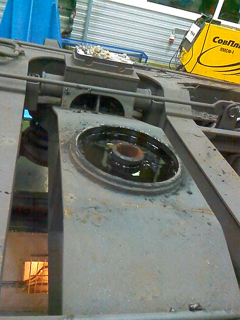 Снизу в него запрессовывают шкворень так, чтобы между верхней кромкой буртика шкворня и нижней частью пятника был зазор 4 мм. На шкворень надевают резиновую втулку 7, армированную проволокой, и металлическую шайбу 6. Подсобранный узел пропускают через цилиндрическое отверстие в верхнем люлечном брусе 9, в которое вварен отрезок трубы. В положении, когда вагон полностью опирается на скользуны, на хвостовик шкворня 4 надевают упорную шайбу 8 и навинчивают гайку 3, которую затем затягивают до упора. При этом резиновая втулка 7 деформируется, ее размер в радиальном направлении увеличивается, и она зажимается в отверстии верхнего люлечного бруса 9. Сверху и снизу на гайки 3 навертывают контргайки 2, которые контрят шплинтами 1. Кроме обеспечения шарнирного соединения вагона с тележкой, шкворень дополнительно гасит колебания вагона.